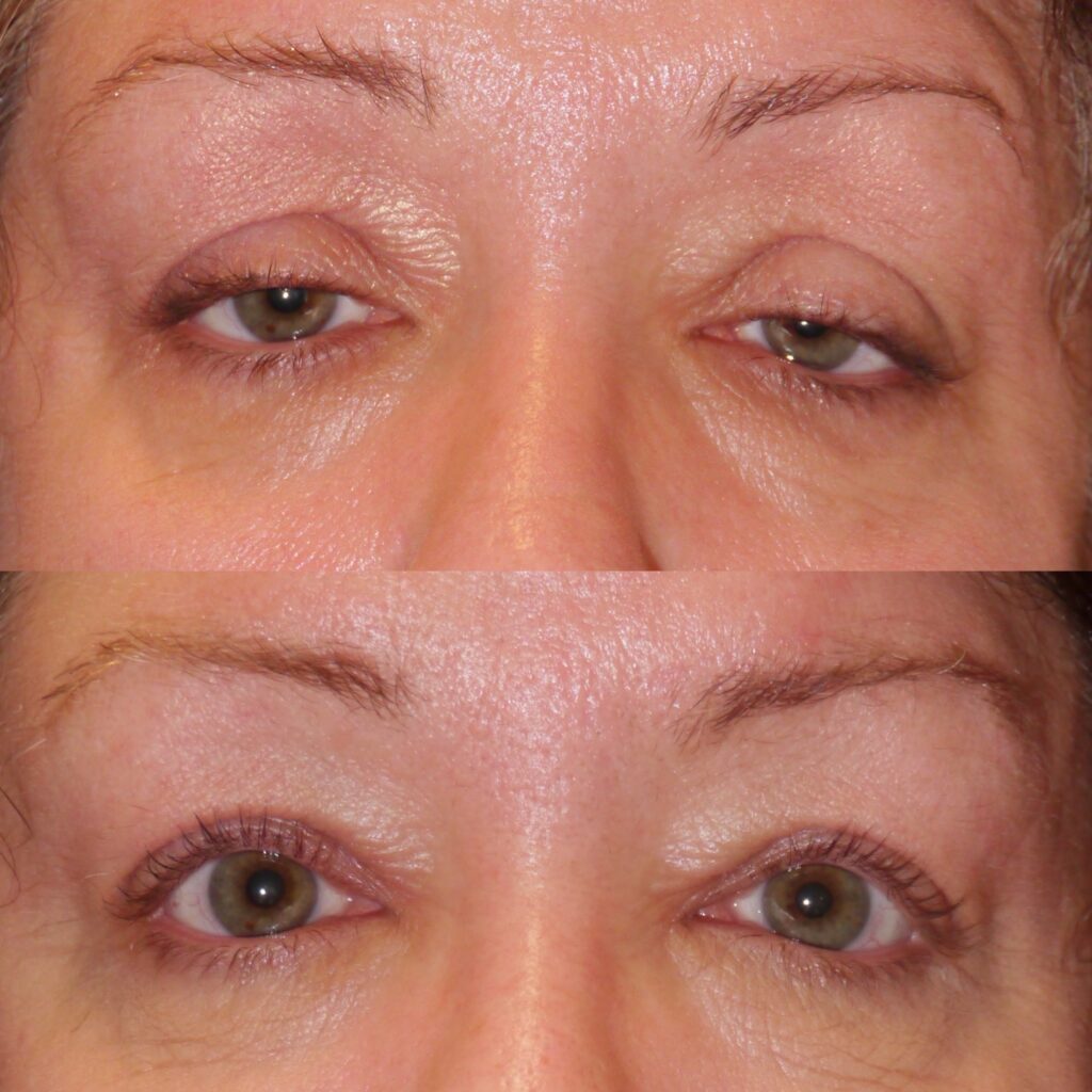 Além disso, a própria manipulação da região durante a cirurgia pode provocar um leve enfraquecimento ou estiramento dessa estrutura. Quando isso acontece, a pálpebra pode ficar mais baixa do que antes do procedimento.